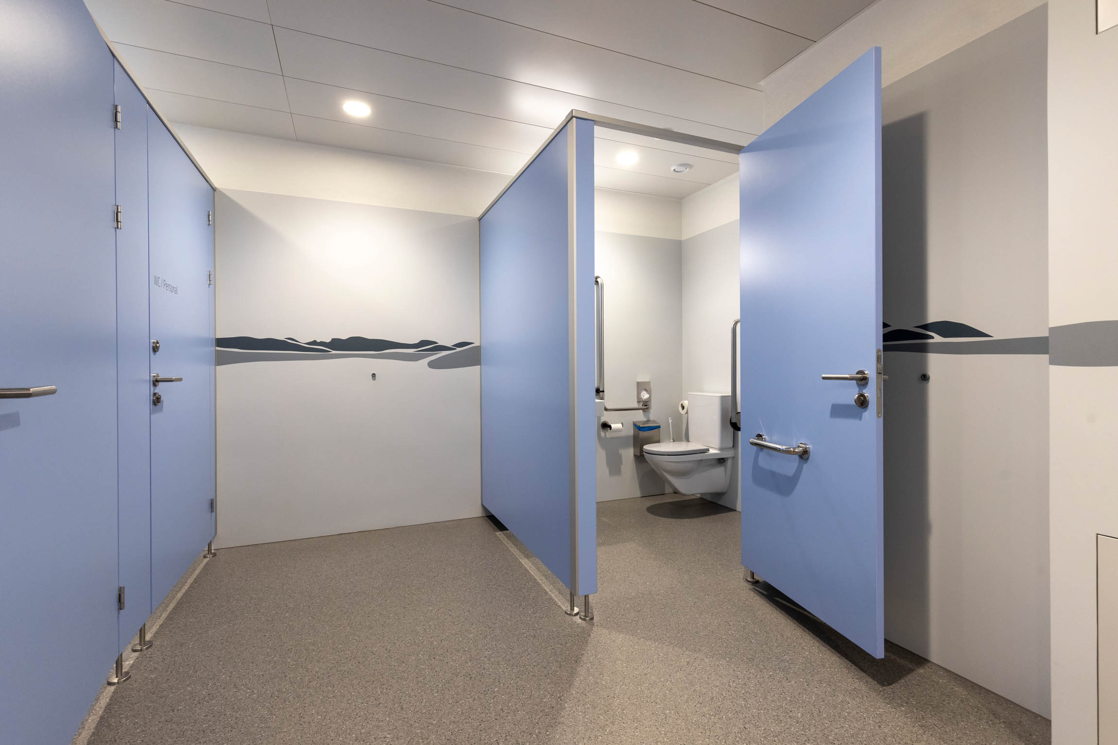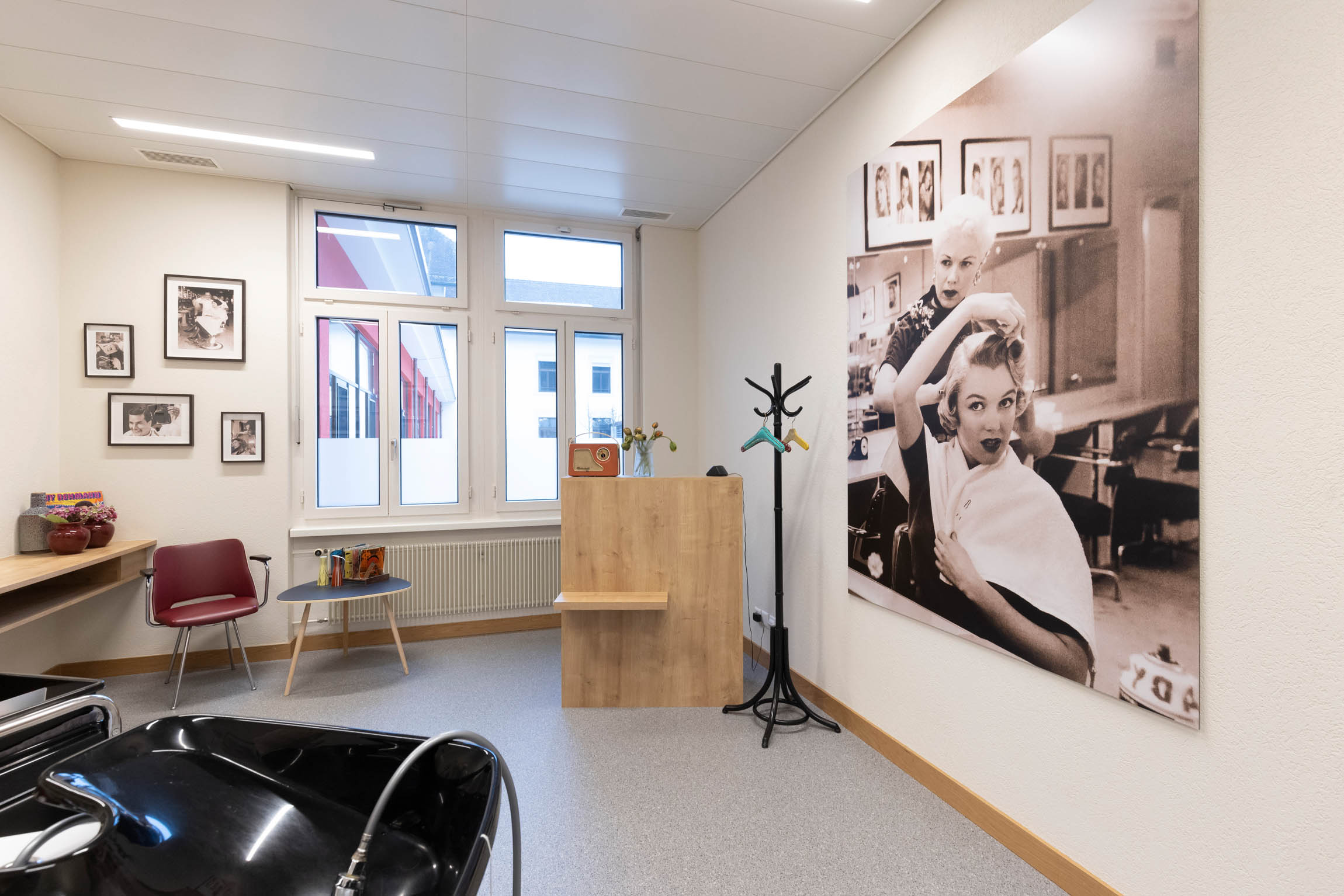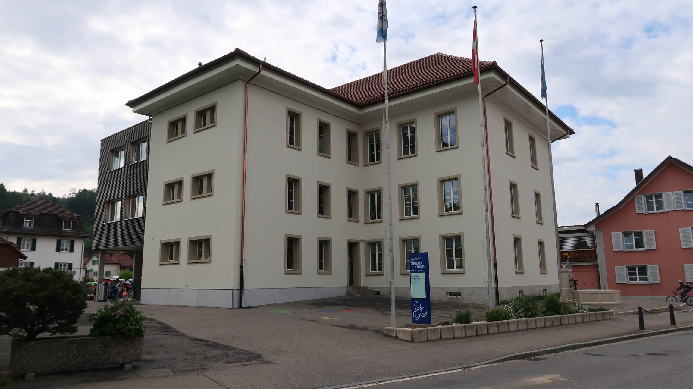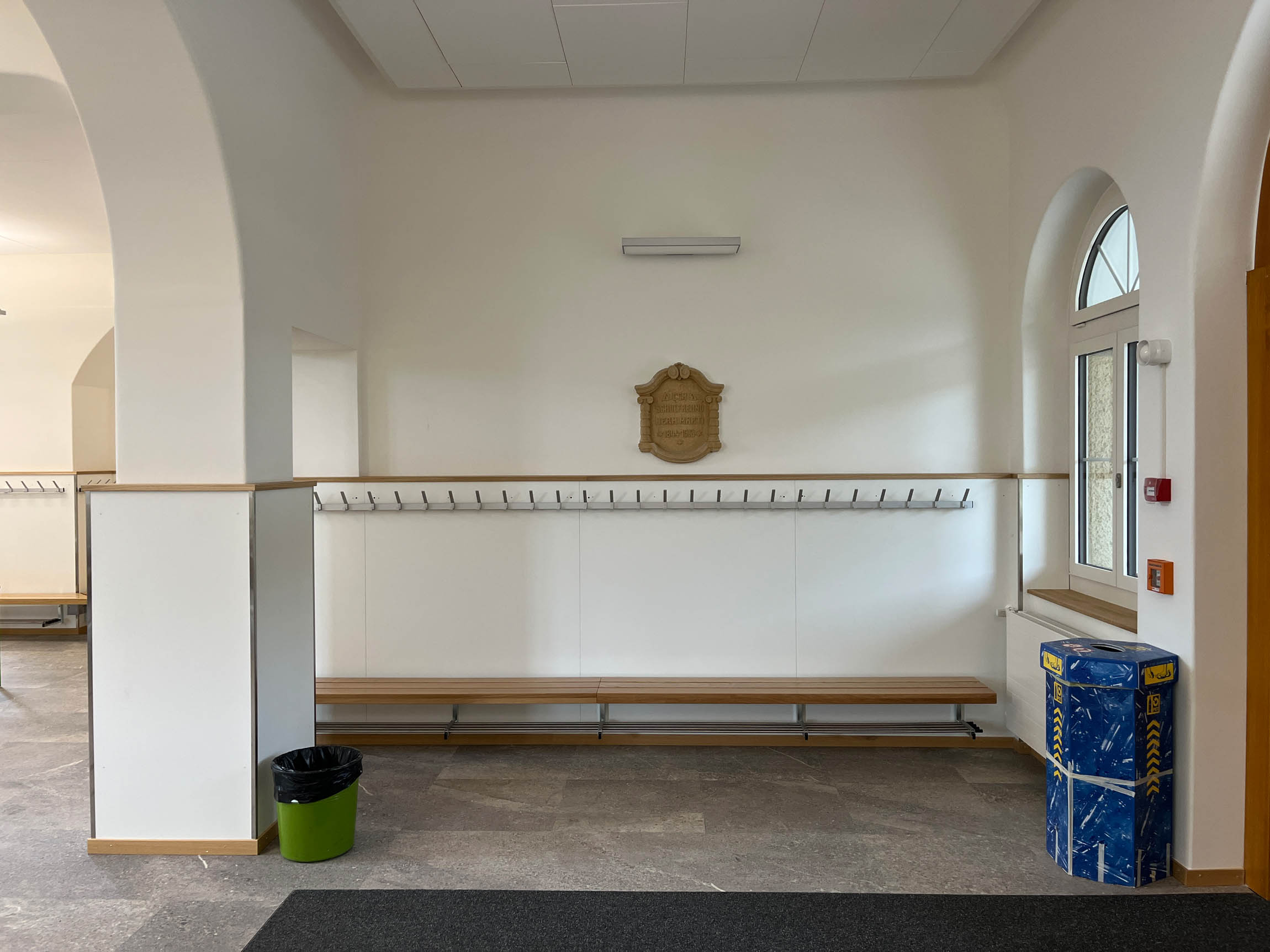 Dieses altehrwürdige Schulhaus wird etappenweise erneuert. Im Jahr 2022 wurden dank den Lukarnen die Schulräume im Dachgeschoss massiv aufgewertet. 2023 folgte die Modernisierung der grosszügigen Eingangshalle.