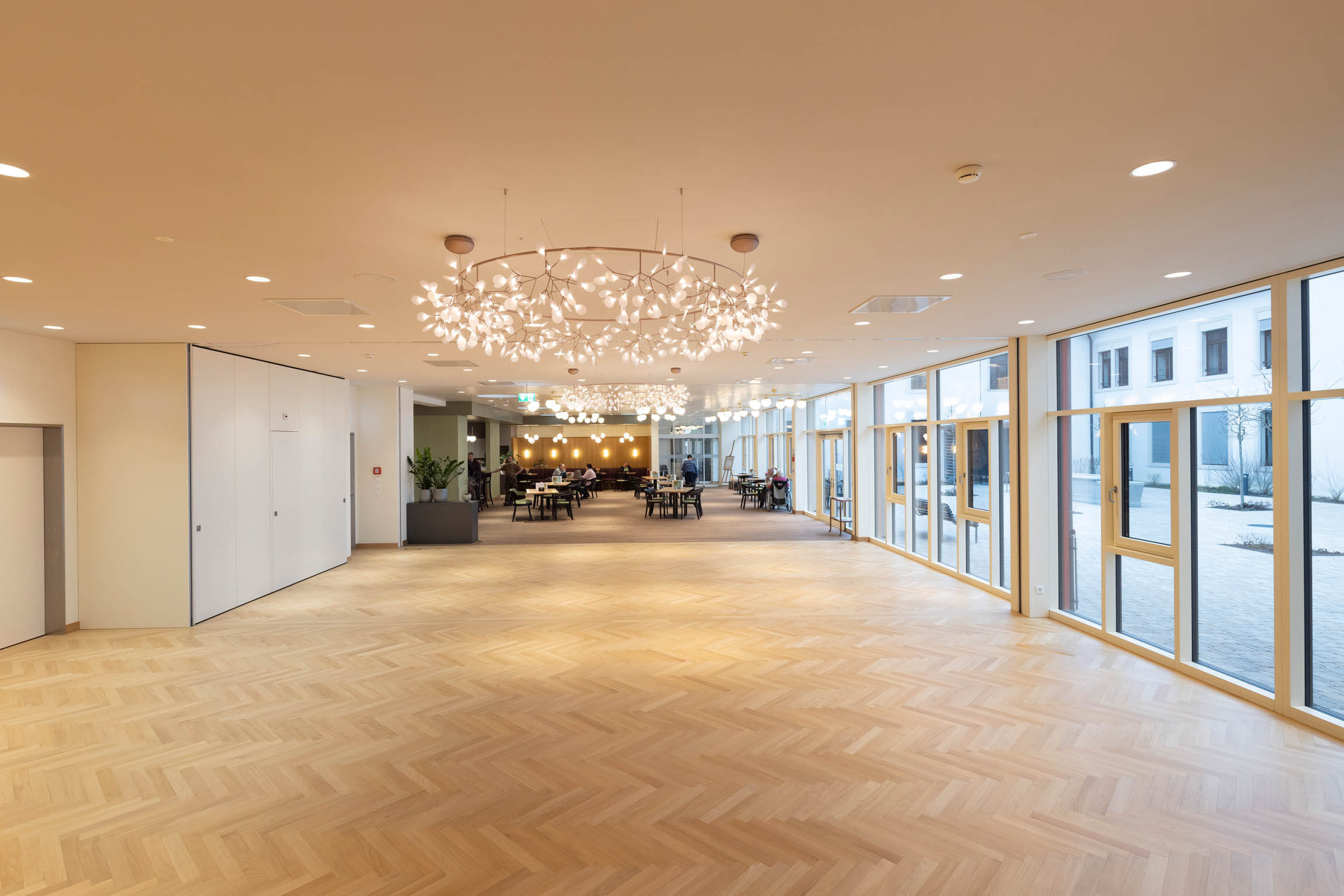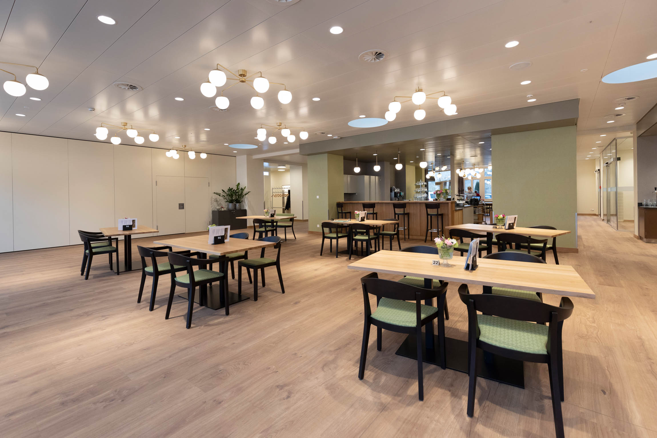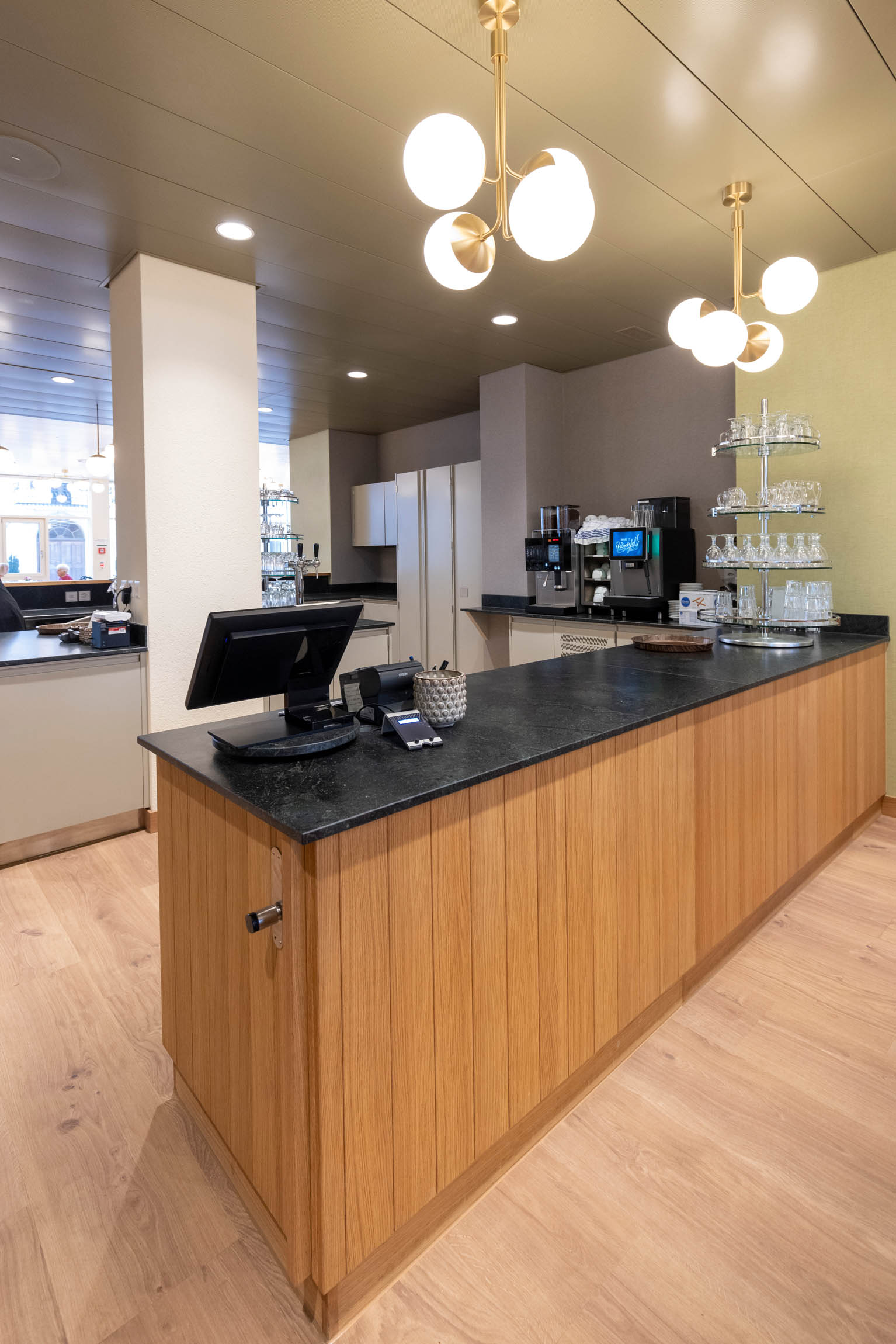 Die Vergrösserung des Restaurants mit einem zusätzlichen Festsaal und die Modernisierung des Innenhofs werten die Erweiterung des Erdgeschosses erheblich auf. In den Obergeschossen wurden die Zimmer saniert und auf den neuesten Stand der Technik gebracht. Anpassungen in den Verwaltungs- und Technikräumen sowie der Einbau eines geschützten Wohnbereichs wurden zeitgleich in Etappen umgesetzt.