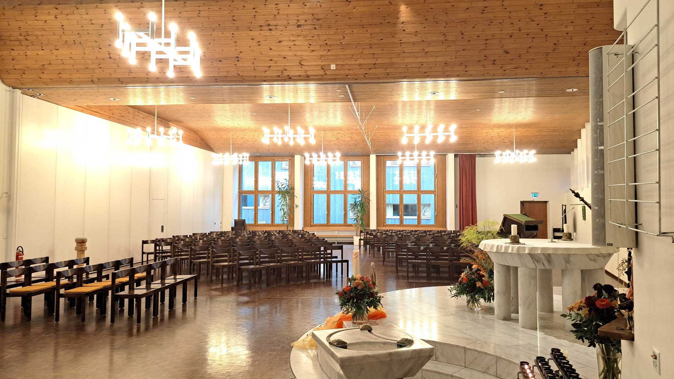 Die Kath. Kirche in Schöftland ist ein Musterbeispiel für eine nachhaltige Sanierung. Holzelementen für das Dach, eine mineralische Fassade sowie neue Holz-Metallfenster bringen die Gebäudehülle auf den neuesten Stand der Technik.