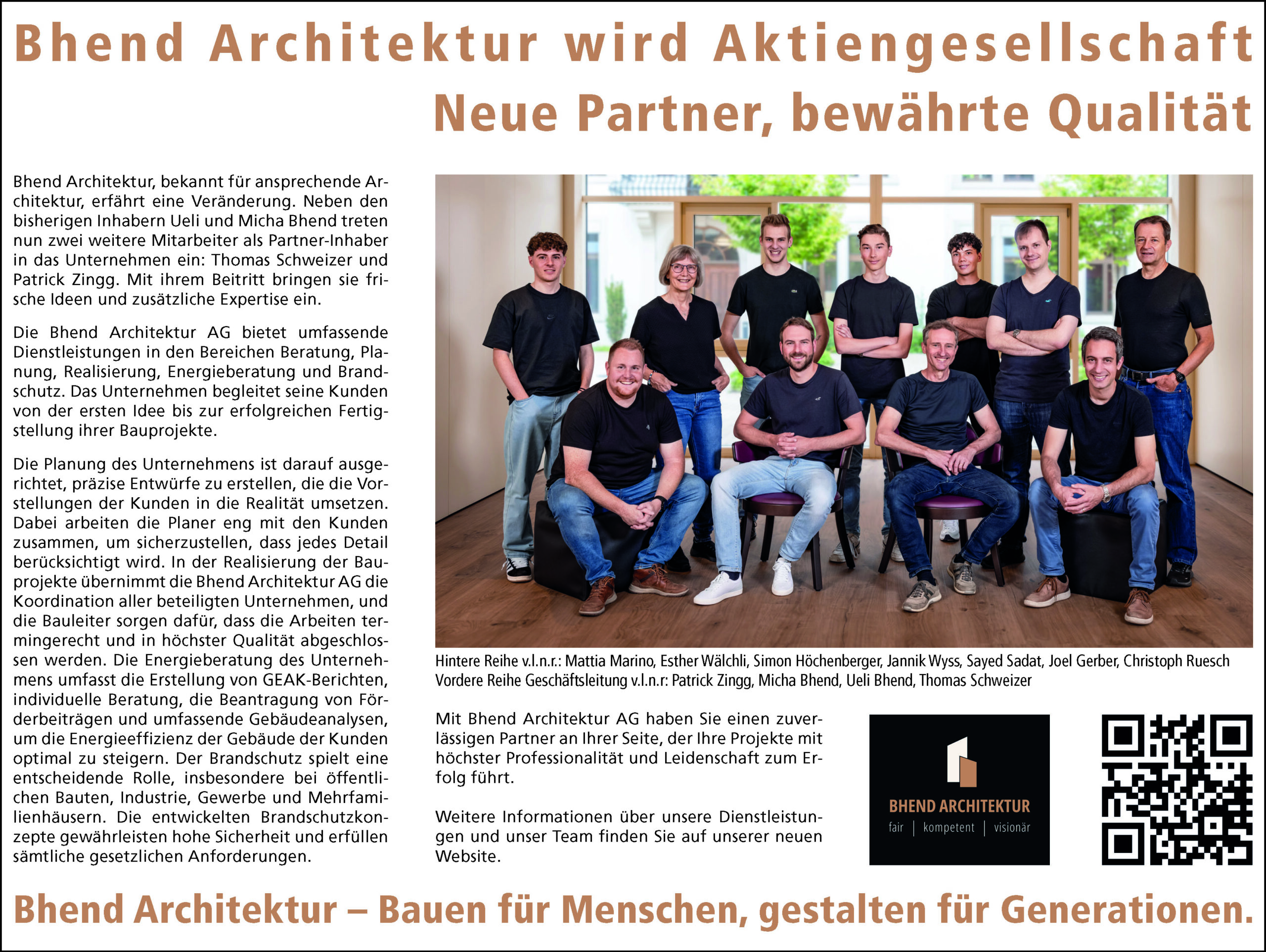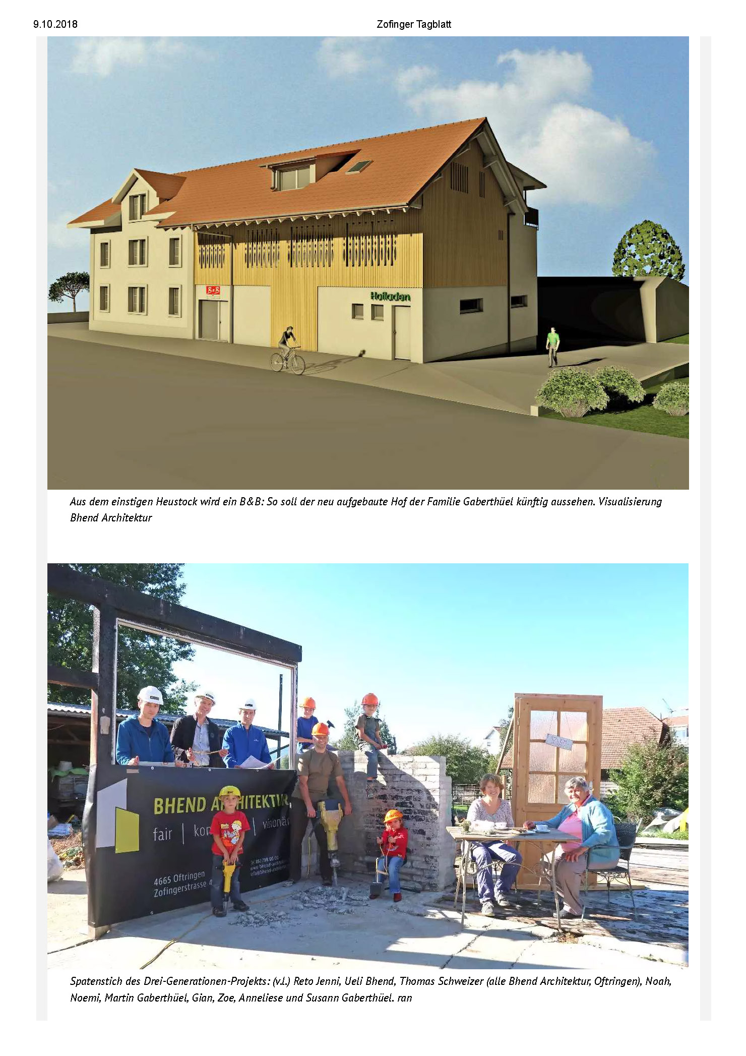 Architektonisch wird der Anbau gleich wie bisher aussehen und auch auf den bisherigen Grundmauern aufgebaut. Über den vier B&B-Zimmern wird es zudem eine Zweizimmerwohnung mit Balkon Richtung Westen geben. Alles wird behindertengerecht gebaut, so wird es auch einen Lift geben. Im Erdgeschoss wird der Hofladen einquartiert. «Die Landwirtschaft soll immer ein Standbein unserer Familie bleiben», sagt Martin Gaberthüel. Die Familie baut mit dem einheimischen Architekturbüro von Ueli Bhend. «Wir haben nach dem Brand sehr grosse Solidarität in der Gemeinde erleben dürfen», sagt die Familie Gaberthüel, «deshalb ist es auch klar, dass wir mit regionalen Handwerkern unseren Neubau realisieren werden.»